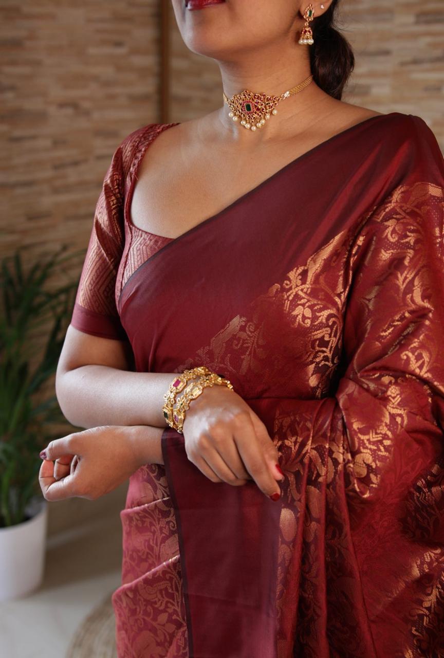 Dalliance Wine Soft Silk Saree with Glorious Blouse Piece