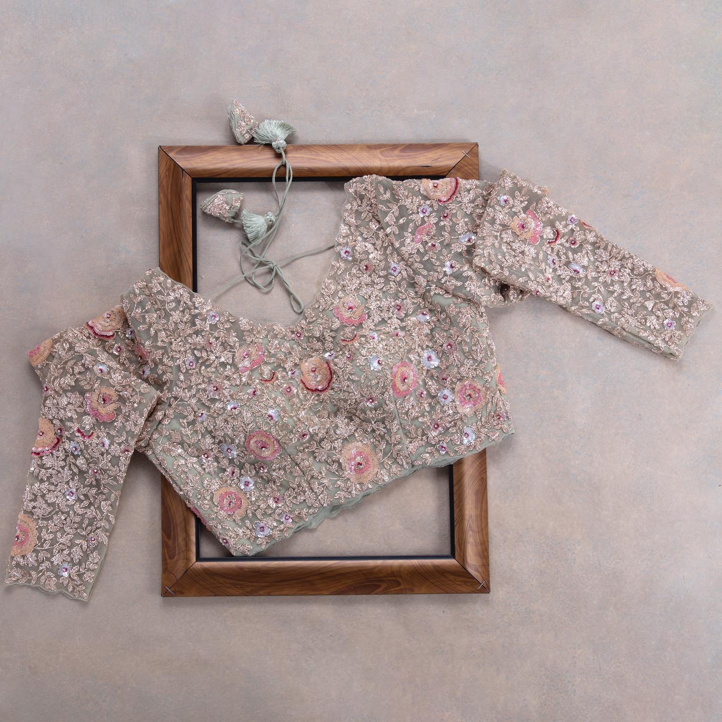 Pista Colour Rangoli Silk Sequence Embroidery Work Saree With Blouse