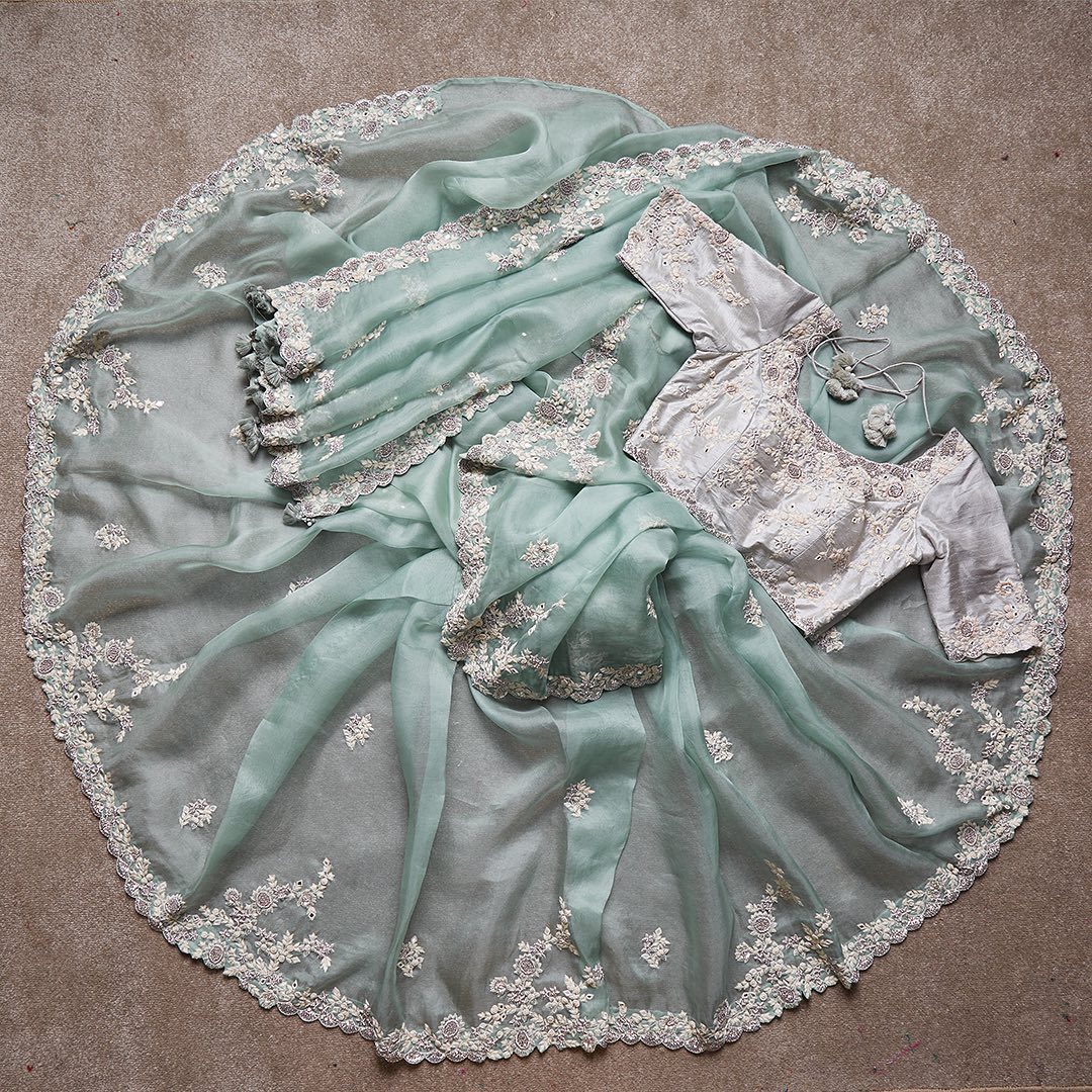 Rama Colour Rangoli Silk Sequence Embroidery Work Saree With Blouse